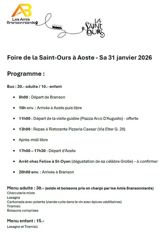 Samedi 31 janvier 2026 - Foire de la Saint Ours à Aoste